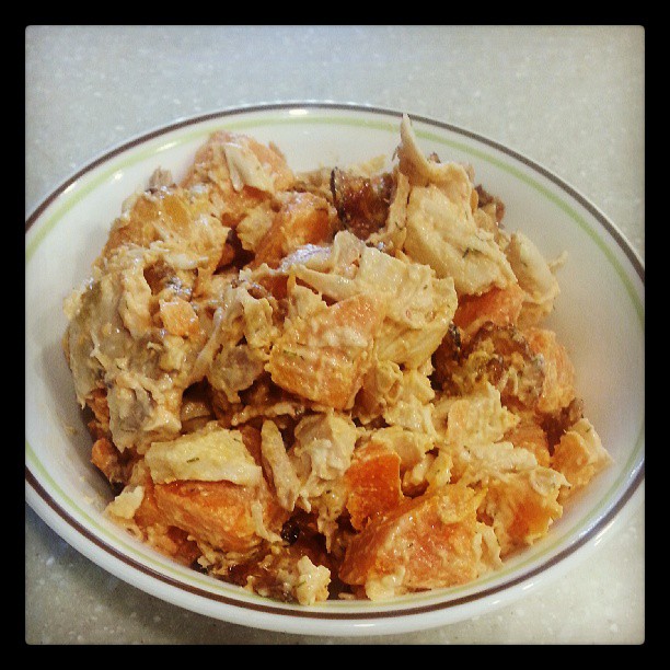 I made this insanely delicious Chicken Bacon “Mac and Cheese”. While this isn’t technically Paleo (because it includes some grassfed/raw cheese) you could leave the cheese out and it would still be plenty delicious. If you can’t get down with dairy, just omit it. I won’t be offended. 🙂
